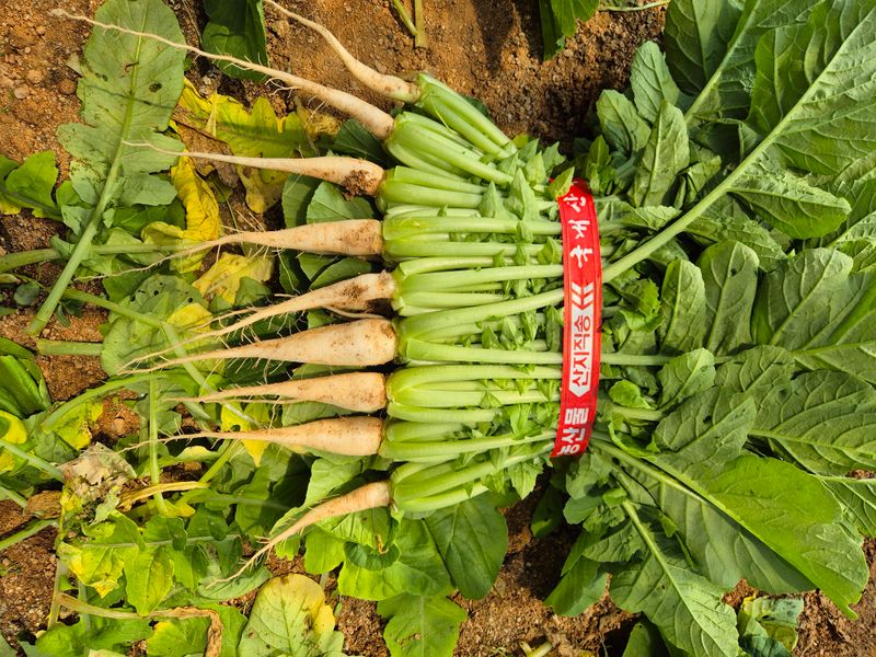 오늘 열무 수확했어요. 뿌리가 너무큰것 같은데 잘못된 건가요? 첫 농사여서 모르는게 많아요.. 아시는 분이 여름에 물을 많이 주면 안된다고 하셔서 너무 적게 준 탓일까요? 사진의 열무는 상중하 등급중에 어느정도 되는지도 궁금합니다.