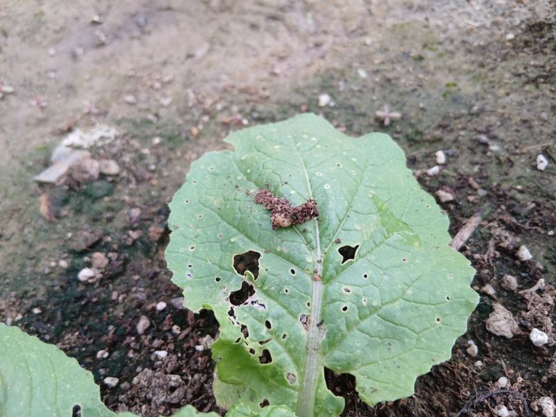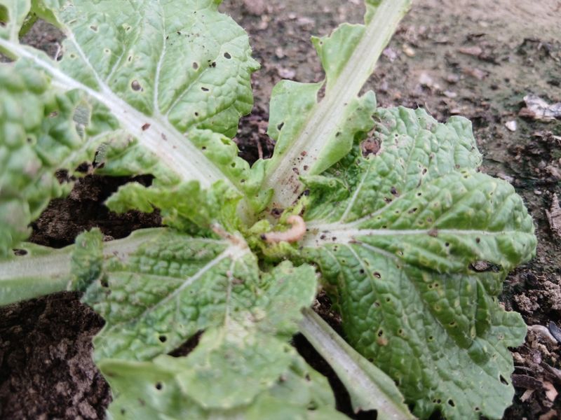 조금 자란 열무 요즘 너무 아파서 제대로 들여다 보지 않다가 어제 오후에 가서보니 고갱이에 흙과 함께 돌돌 말고 있는벌레 무슨 벌레 일까요?약은 어떤것을 주어야 하는지 고수님들께 예쭈어 봅니다~^^