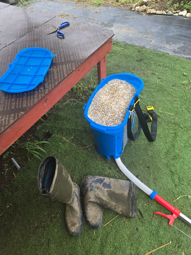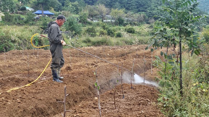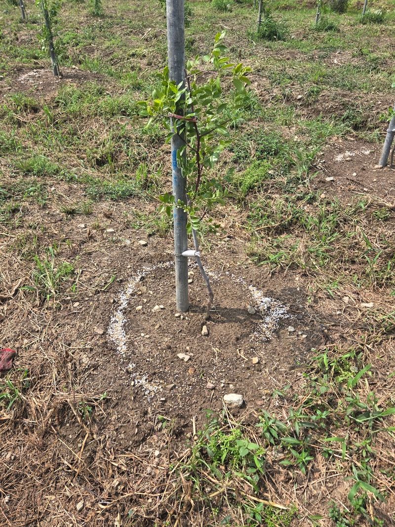 비가온다 해서 사과대추 나무에와 호두나무에 1000평에 NK비료을 주었는데 비가 안오고 해빛만 쨍쨍하다. 된장