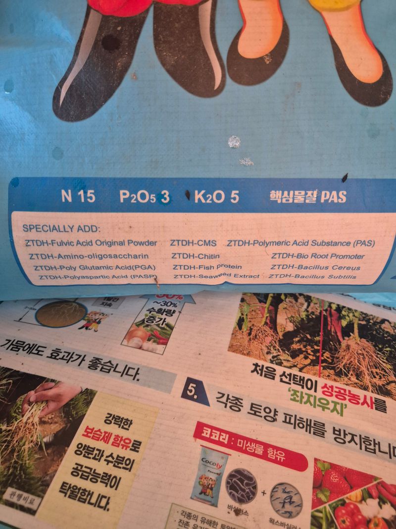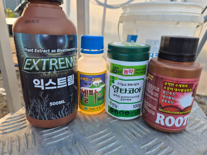 파종 10/31: 물 100당 엑스칼리버 1봉, 큰나락 2봉, 디메토 100ml 11/1: 물 100당 토생수 1병, 큰나락 2봉, 디메토 100ml