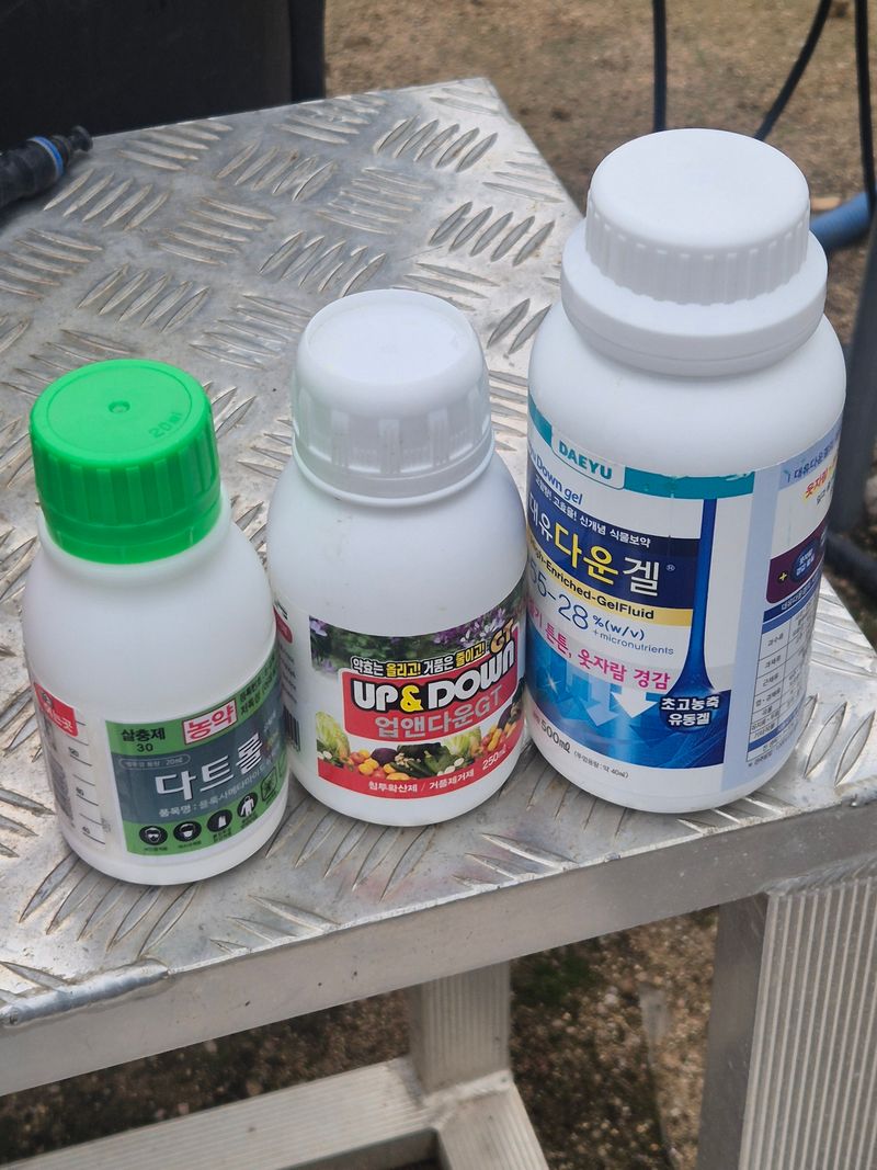 우측 400L 좌측 200L 메소나 500배 / 랜드콘JS 250배 / 엑스칼리버골드 물 200에 30g