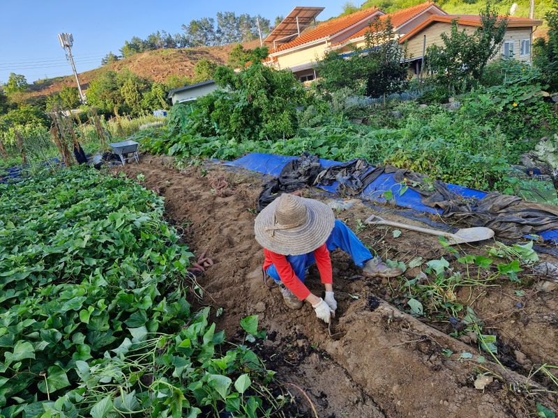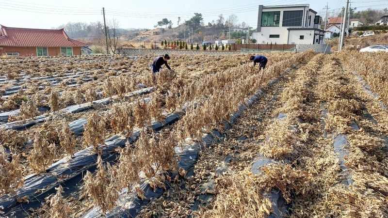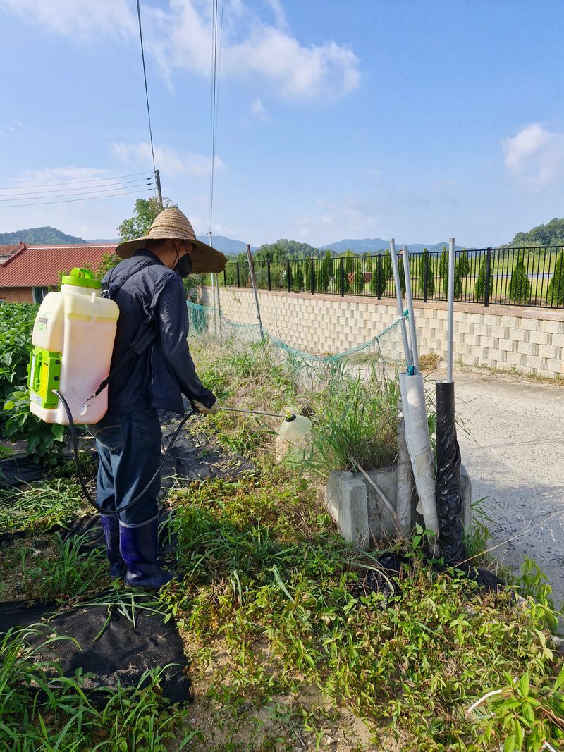 엄나무식재60그루 블루베리8그루식재 부직포덮기