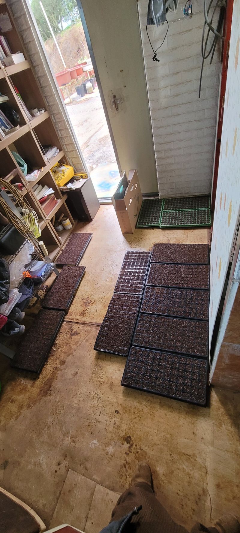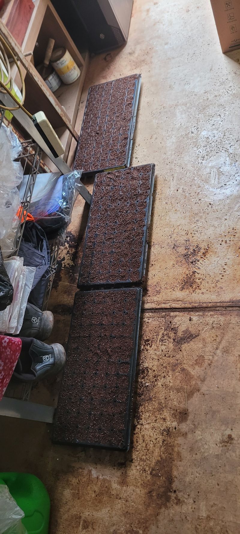 모판준비해서 상토 넣고 고추씨앗 넣고 상토 덮고, 물 분무해서 보일러실에 비치함 일반고추:885주 ~105구 5판=525주 ~72구 5판=360주 청양고추:216주 ~72구 3판=216주 일반고추 885주 청양고추 216주 총 1101주 일단 모판에 파종 완료
