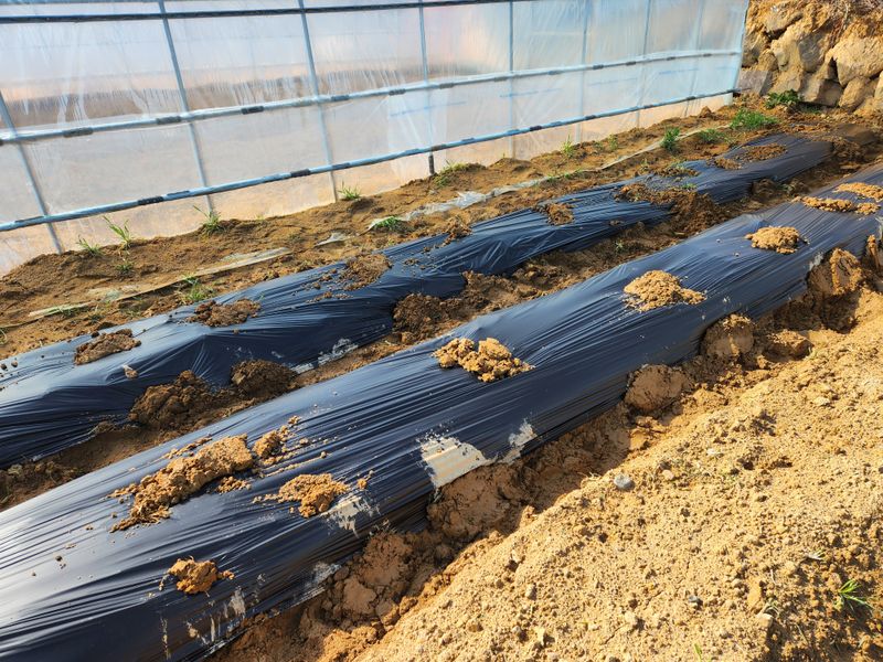 감자 밭 흑색 고밀도 비닐멀칭 원예 가지.상추 비닐멀칭