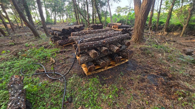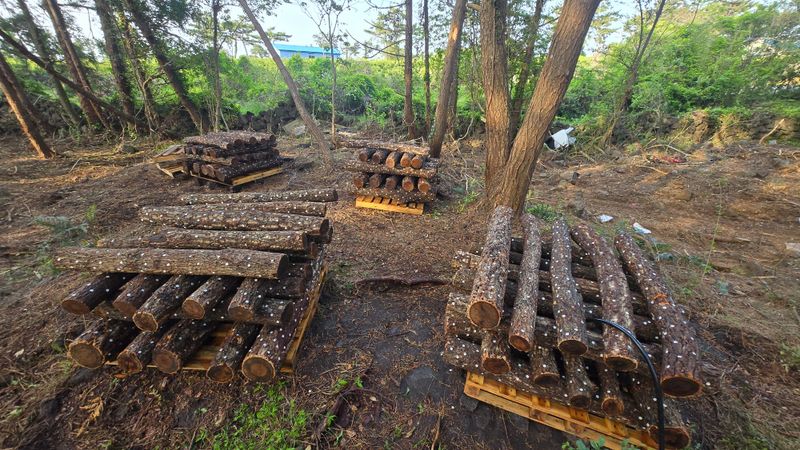 10일 이내 8시간 이상 스프링쿨러 매번 작동함 그런데 종균심은 참나무에서 싹이 난다? ? ? 임산물유통센터에 항의함 싹 나오면 뜯어버림