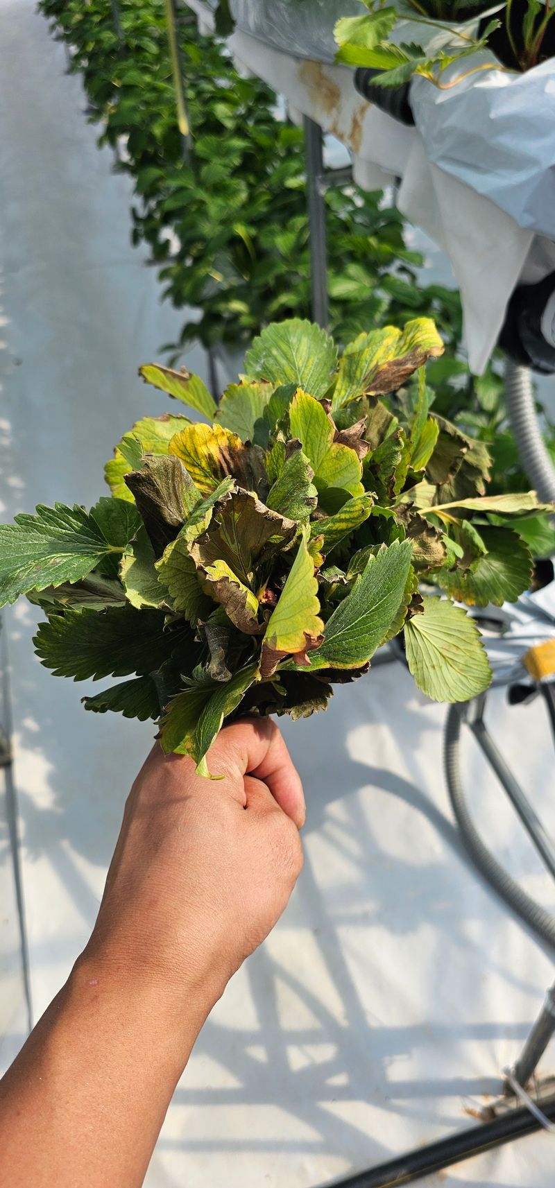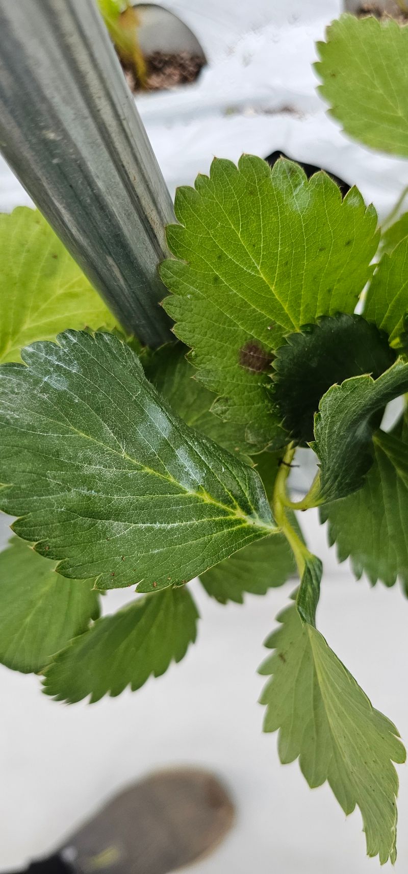 한여름에 딸기하우스와 양액기를 직접만들고 드디어 첫 정식을 했다. _정식전 상토에 처방한것_ 스포르곤-탄저,흰가루,잿빛곰팡이,꽃곰팡이,시들음병 후론시아-역병 테라피-목화진딧물 데푸콘-작은뿌리파리 정식후 4일차 ec 0.7 30미리 관주 22일 첫정식 후 맹물...