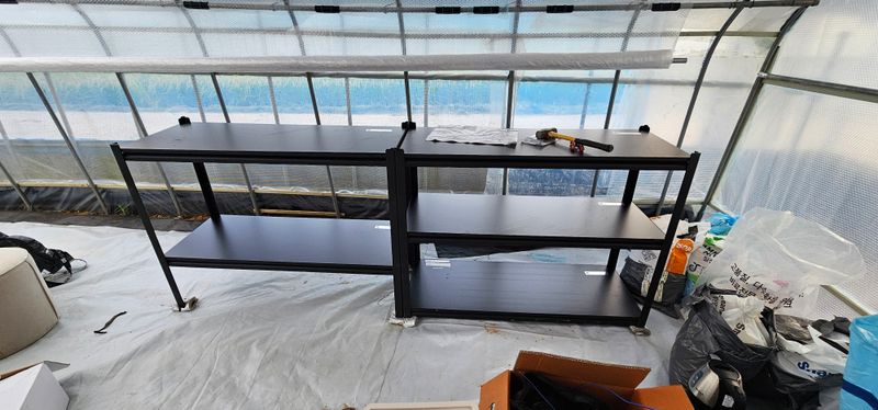 아침 9시 관주 ec0.7 50미리 오후 4시 관주까지 총 8번 새싹이 잘 자라고 있다. 뿌리활착이 되어가나보다 철제선반설치,공기순환팬 추가설치