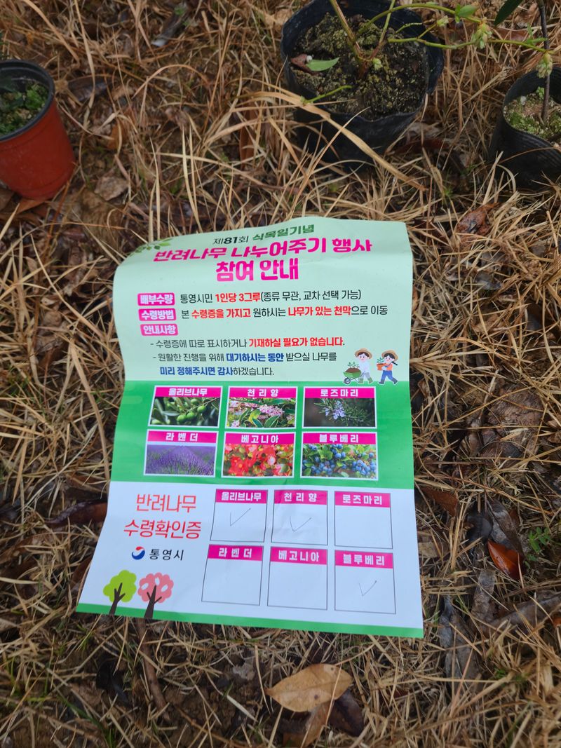블루베리1, 오리브유1, 천리향1 내죽도 공원서 무상으로 받아 식재
