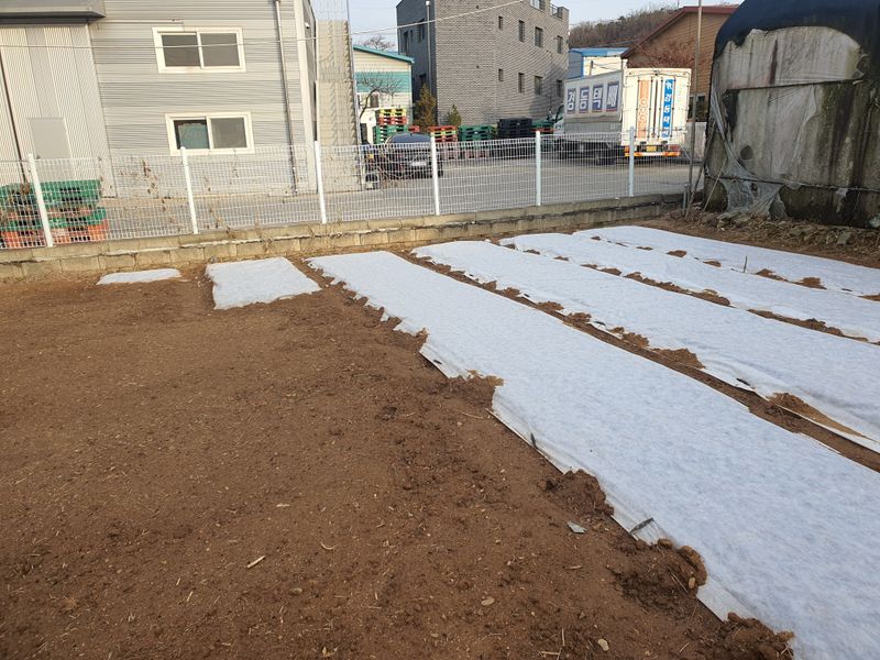 상추파종. 마늘,양파 부직포 제거