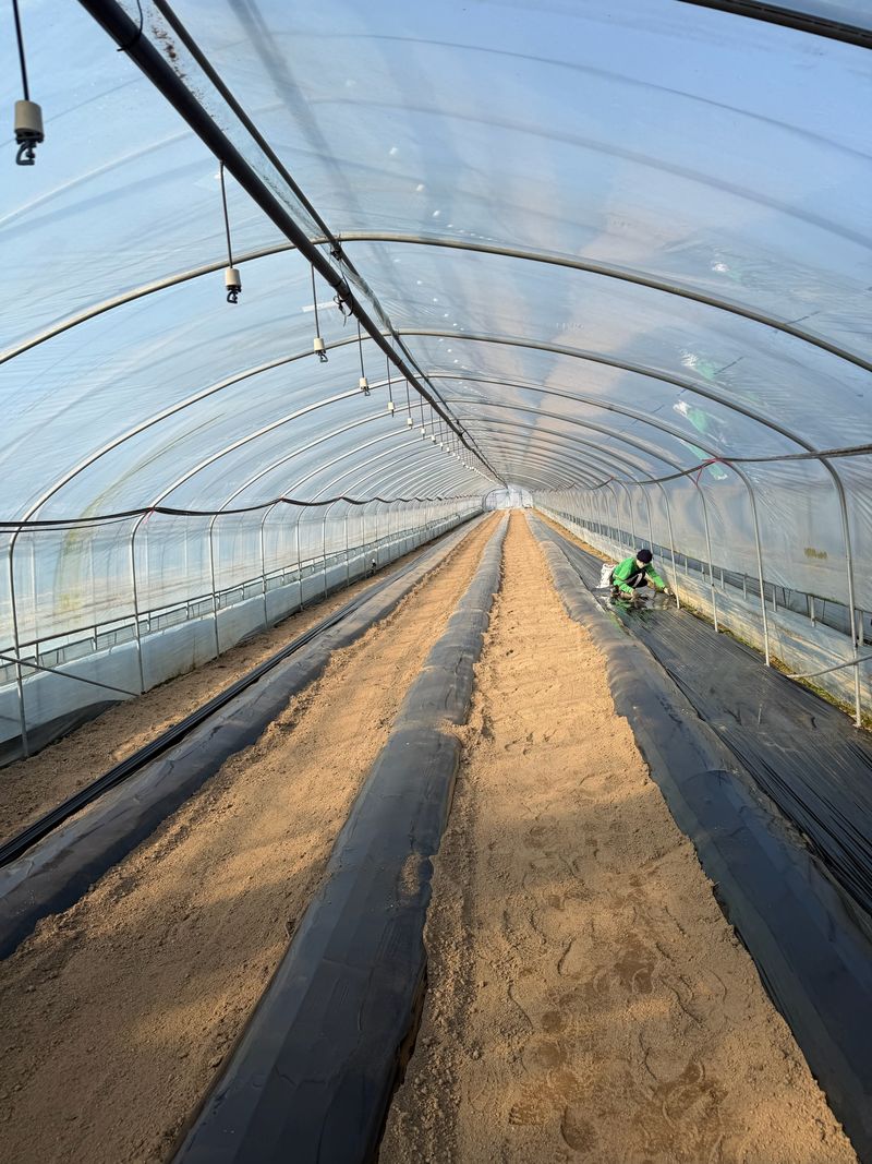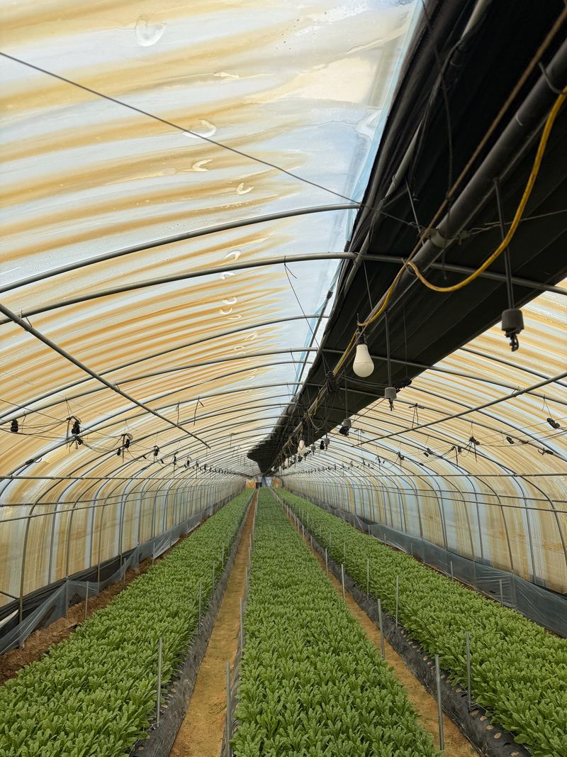 어농리 - 스토크 아래 4번 끝, 위 7,10번 1-2번 남음 - 리시안 조금 나오기 시작 주미리 - 새로 계약한 땅 하우스 짓기 전 로터리 1회 - 기존 7동 시금치 양쪽 옆구리 올림