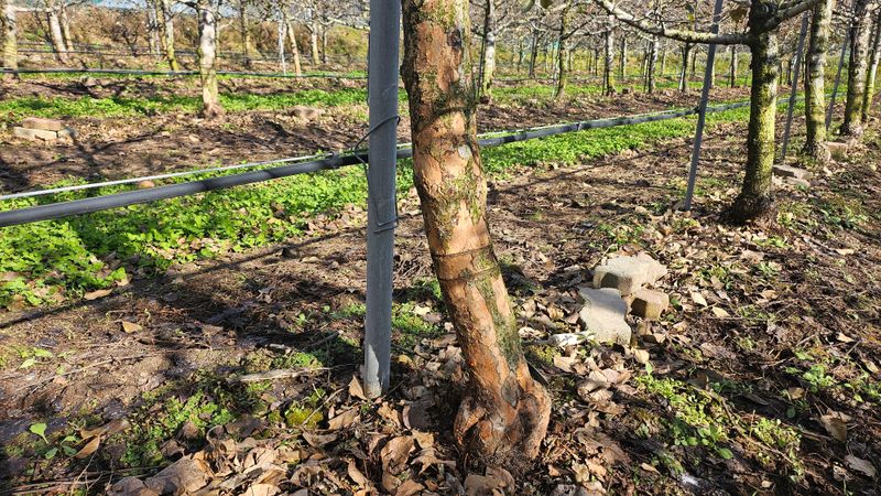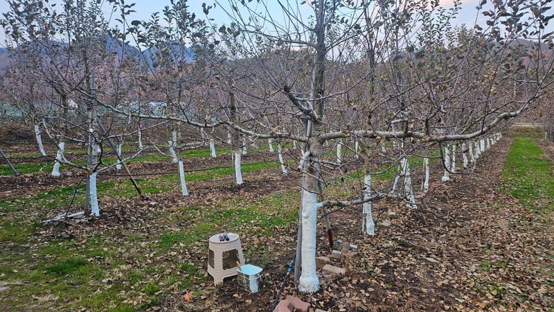 동해 방지용 페인트 전 조피 제거작업 청태제거 (빙초산+락스 5%) Sample 살포 5그루