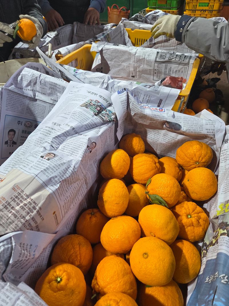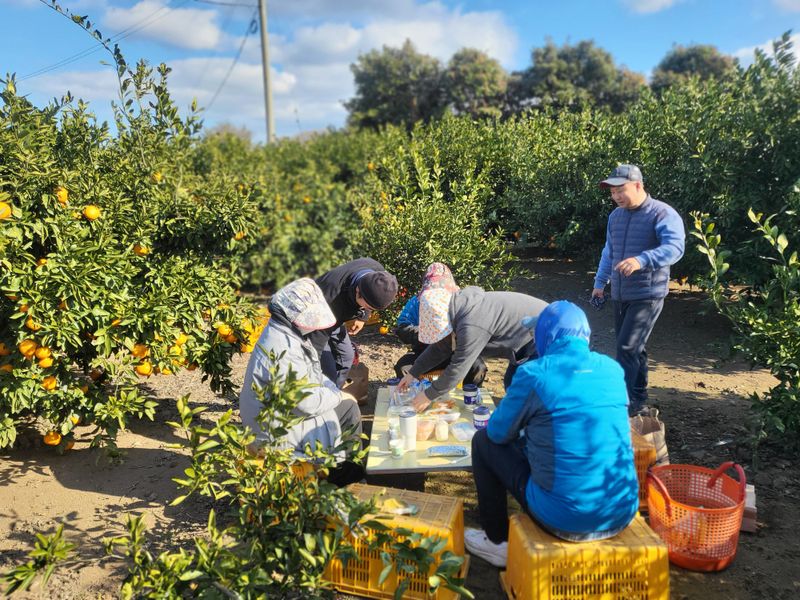 온 가족이 힘을 모았다. 감귤밭에서 송년회를 대신했다. 노지 조생귤 50CT 수확 택배 10kg 20박스