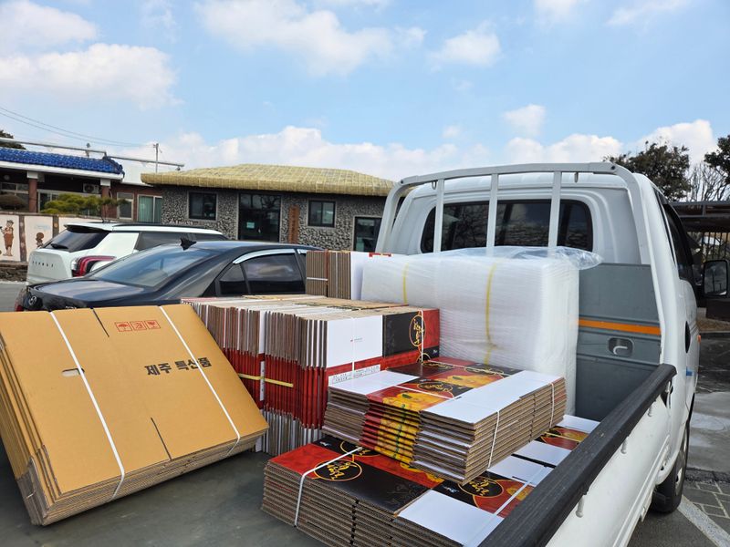 한라봉 택배박스 구입 노지 한라봉 35박스 택배발송