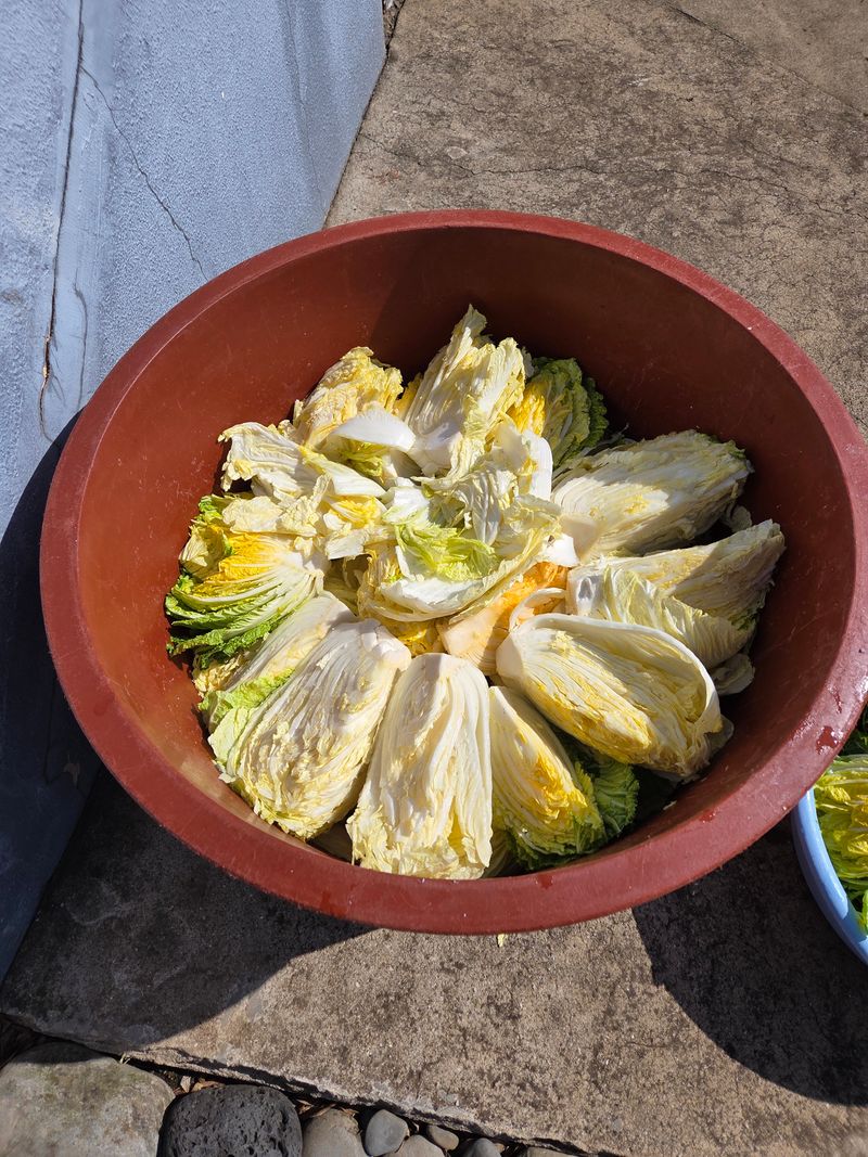 우영팟(텃밭)에 심었던 배추로 그동안 미뤘던 김장준비를 했습니다. ^^