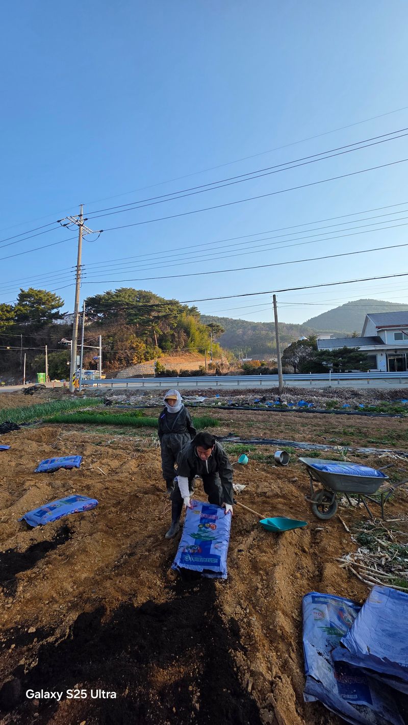 고추밭 퇴비 뿌리기