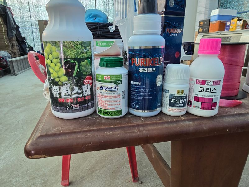 정양리, 반계리 병충해 방제 500리터 휴먼스탑 1000ml(영양제) 썬크루즈 170g(살충제) 15,000원 퓨리겔프 500ml(해조추출물)36,000원 푸레착착 84ml(전착제)5,000원 코리스 250ml(살균제)39,000원 총 95,000원