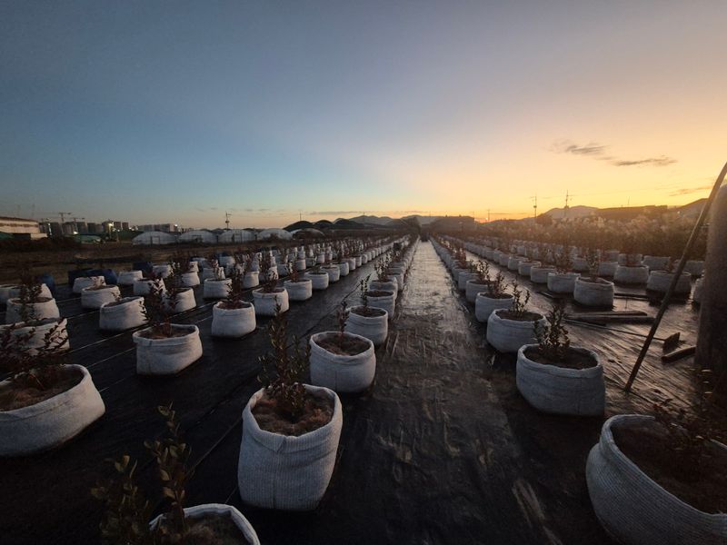 블루 레이디 식재후 코코화이버 멀칭 작업, 400평 메도우락 묘목 배치가 끝나가고 있다