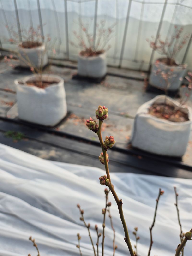 메도우락 꽃눈이 움직이기 시작한다 지금은 너무 이른감이 있어서 하우스를 일단 개방하기로 한다