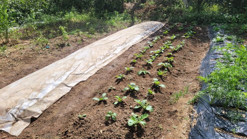 무 북주기 및 제초 및 소독. 시금치. 무 파종