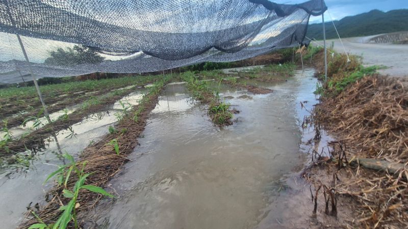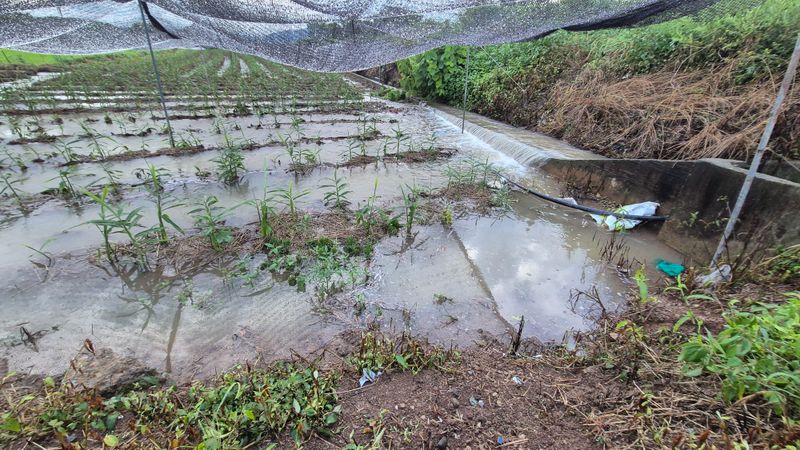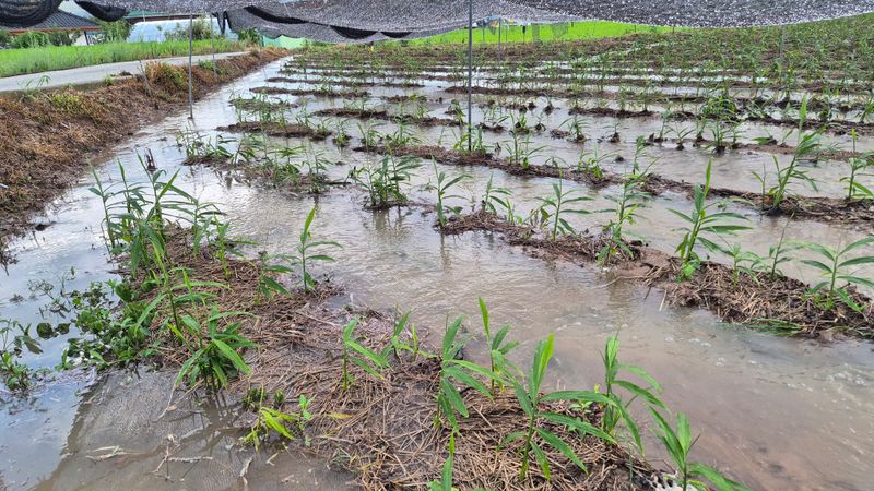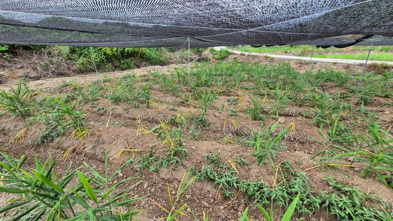 침수된 생강밭에 뿌리썩음병이 와서 영양제 비료 관주 처리했는데 살아 날려나~ㅠ