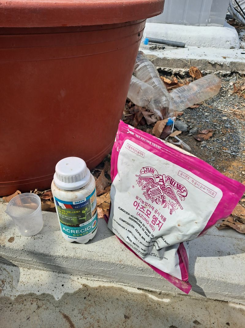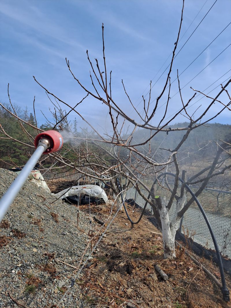 사과 지지대 만들기 마늘 양파 해조추출물 4ml. 아미노산20ml. 침투확산제4ml. 유황칼슘20ml 희석하여 살포