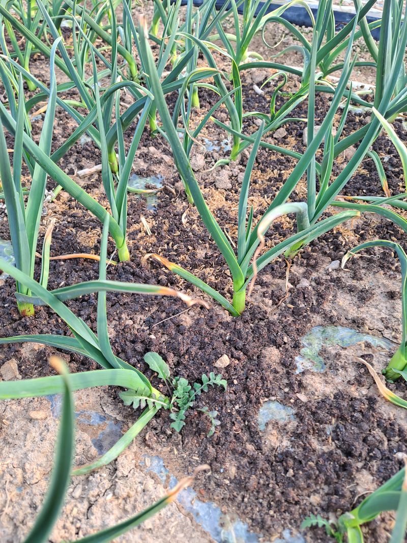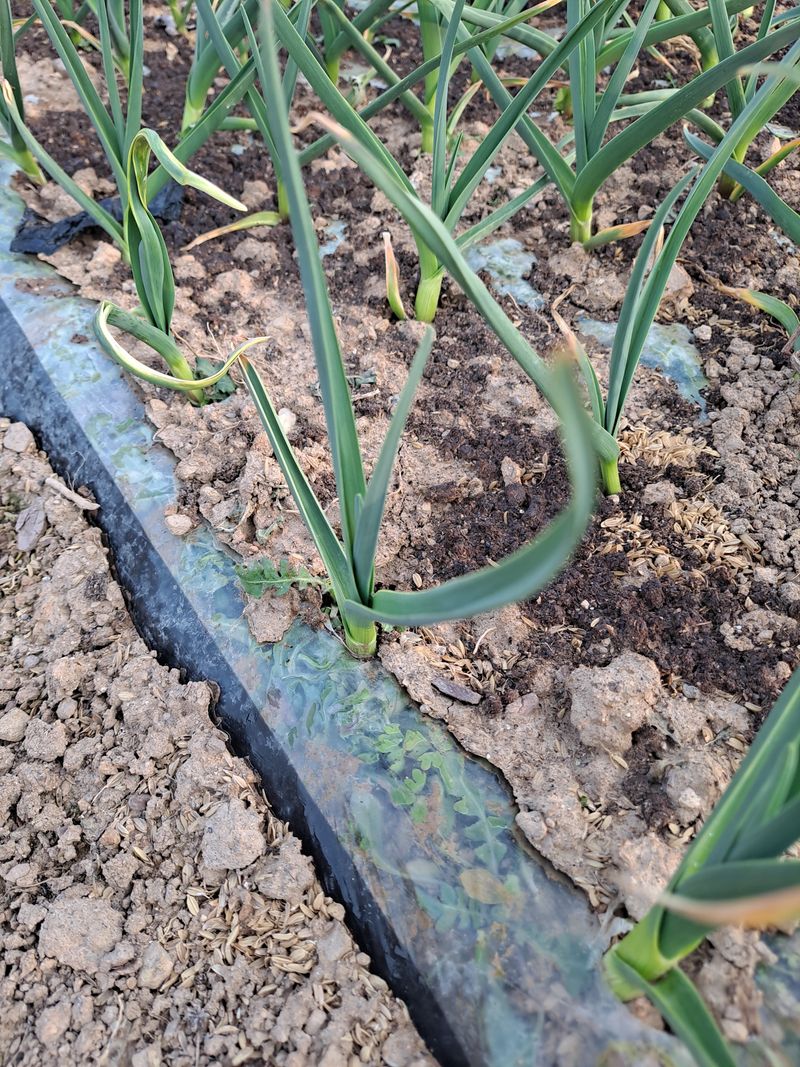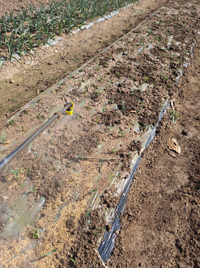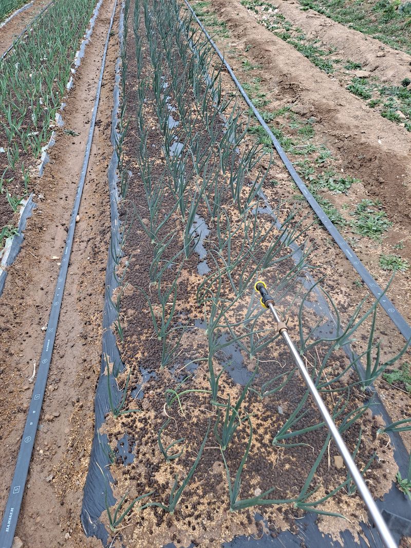 마늘밭 흙으로 덮고 풀 제거 물 1말에 NPK수용성비료 40ml. 아미노산 80ml희석하여 살포 의성마늘과 양파에 유박 4포 뿌림
