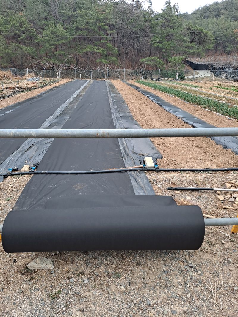 고추밭 비닐 멀칭 작업 고랑 부직포 설치