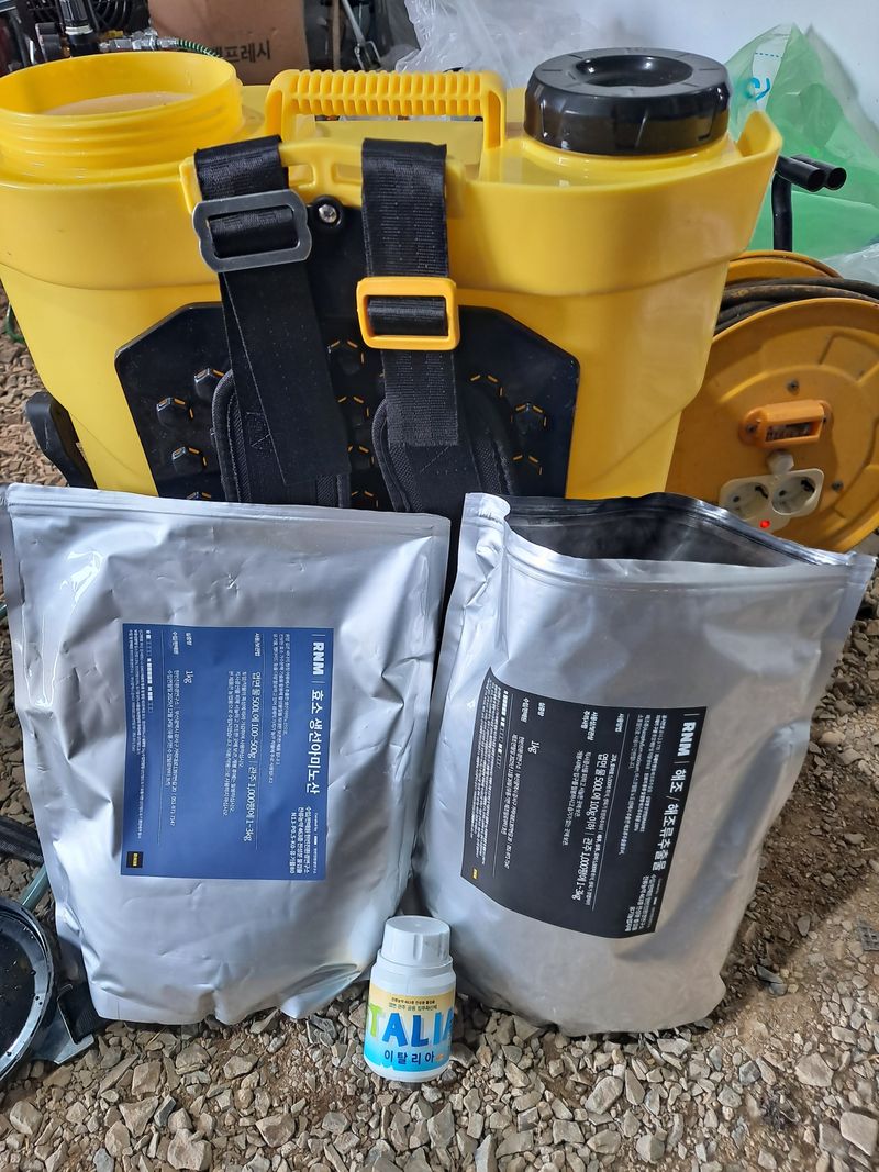 밭 배수로 정비 농사용 자동펌프 보수 양파 발근제 및 유황(아즈모엠지) 혼합 살포 폐비닐 제거 작업