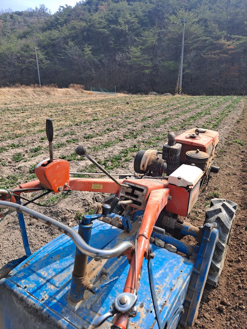 고추밭 두둑 경운기로 만들기 님케이크 두둑위에 뿌리기 마늘 흙으로 덮기