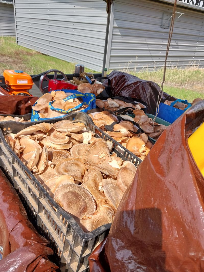 버섯 수확 및 제초제 살포
