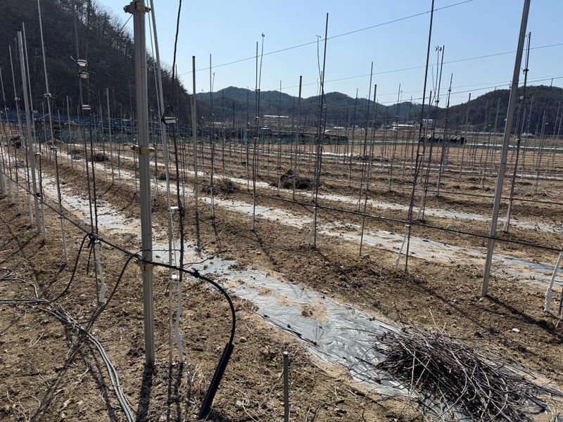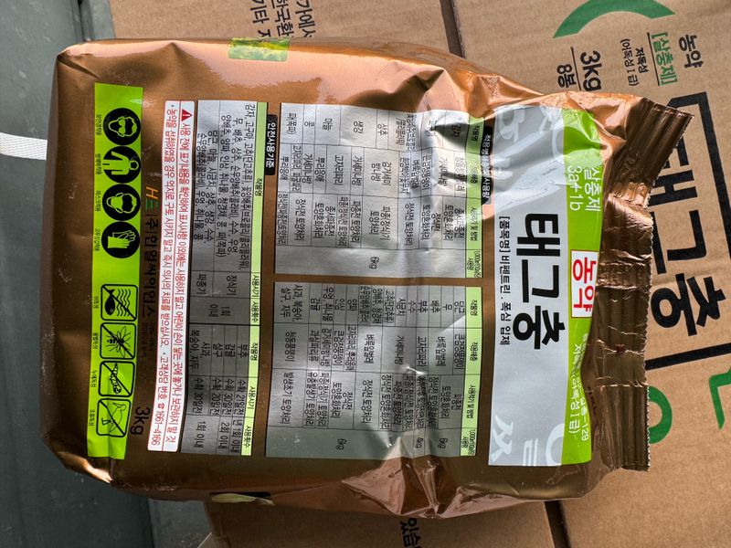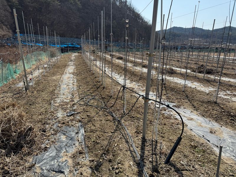 과수원 부수불 제거 작업 완료 토양 살충제 및 살균제 살포 살충제 3포반 살균제 3포반 칼슘 및 유황비료 8키로 살포 고추밭에 퇴비비료 50포 살포