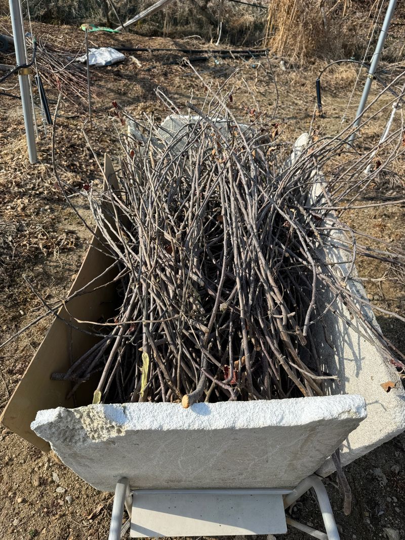 과수원 낙엽 및 콩깍지 등 제거 전정한 가지 수거작업 완료